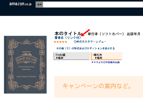 - たとえばAmazo〇さんの場合、著者名をクリック(タップ)していただくと、その著者の書いた本が一覧となって表示されます。